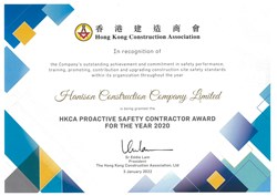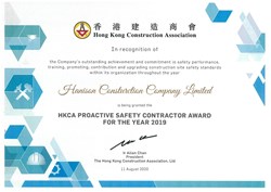 HKCA Proactive Safety Contractor Award 2020