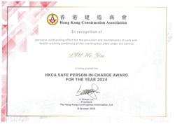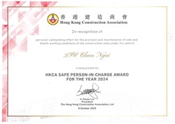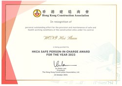 HKCA Safe Person-in-Charge Award for the Year 2024